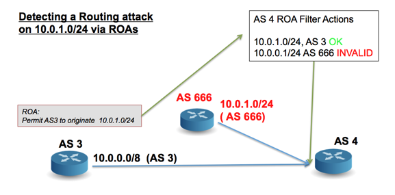 Figure 2 – Use of ROAs to detect unauthorised Route Origination